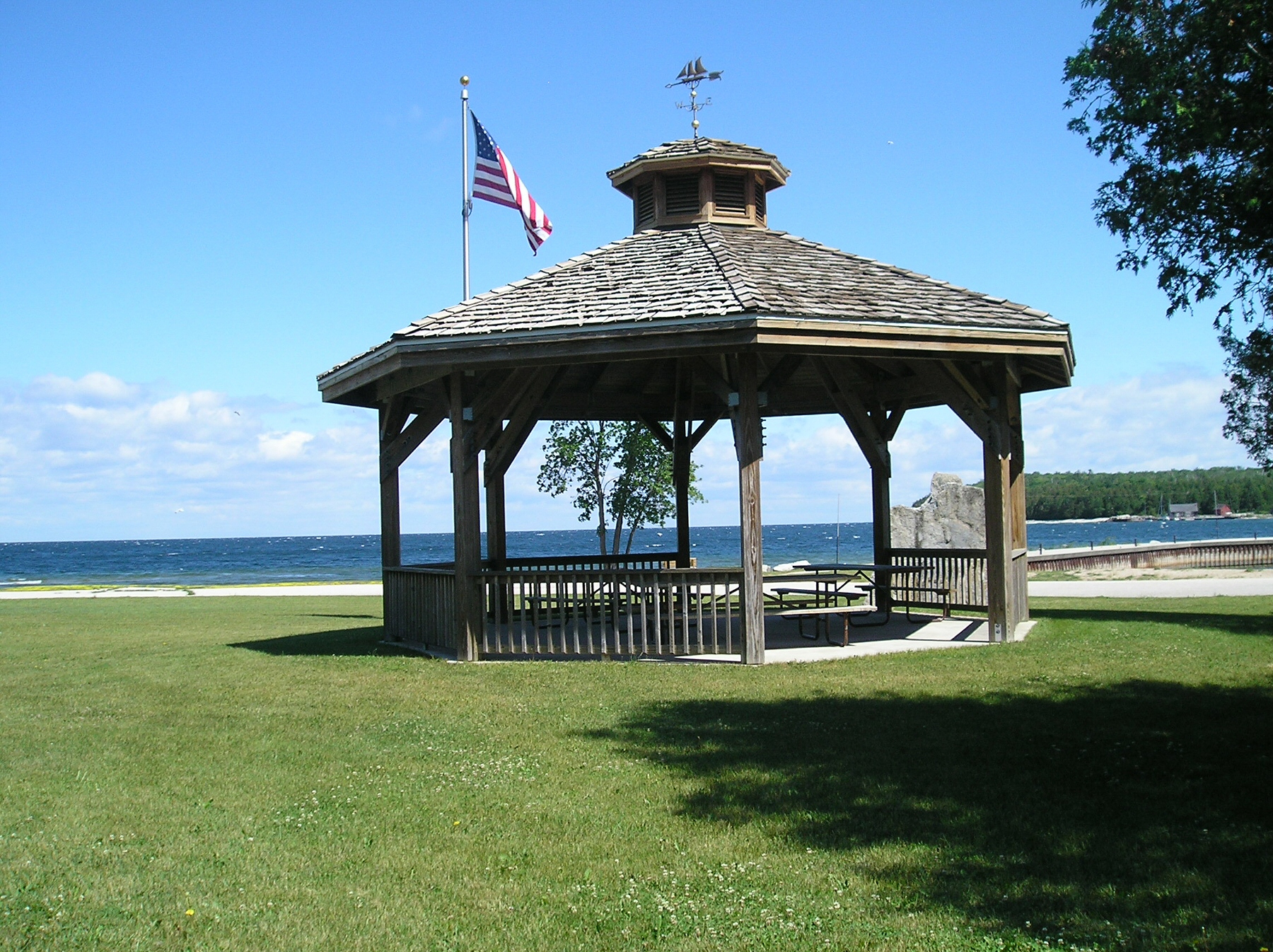 down past the taut white shirt covering the balcony