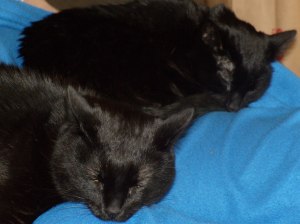Woke up at 4:30 a.m. with a cat fight on my lap. I’d been sleeping in the chair out in the living room with Jake on my lap. Apparently Simon decided to jump onto my lap and must have jumped onto Jake and all hell ensued. If you’ve ever had a cat fight on your lap in the dark, you know it’s like being awakened with ice water. They carried on for less than a minute but in the process I got two bites on my hand, one of which bled profusely. We’ve now got them separated again–Jake in Eric’s room, Simon free.