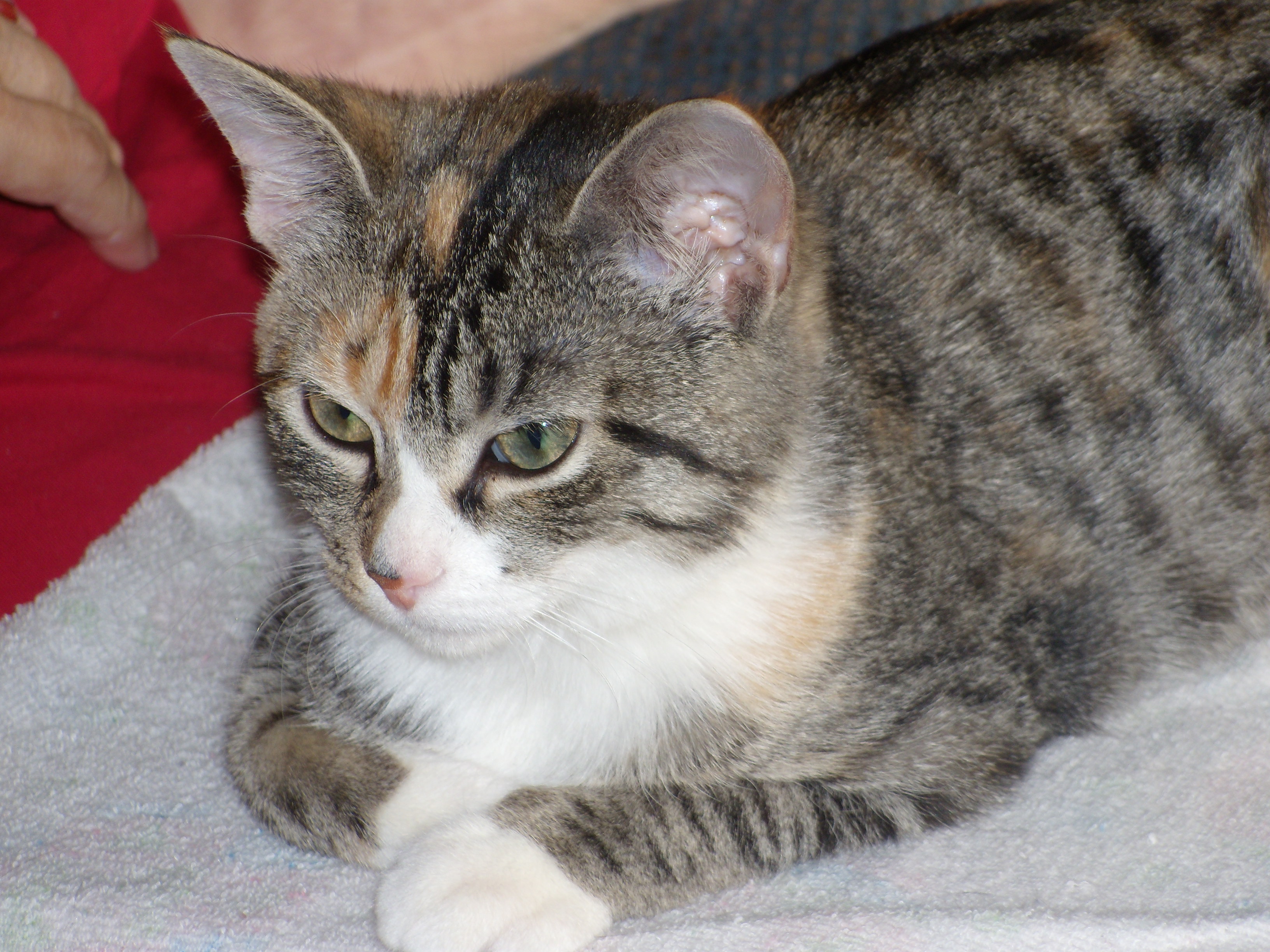 I have acquired a kitten. I’m sure if you haven’t had a kitten in a while you are thinking “aaawww,” but those of you having memory of your time with baby pets are nodding your heads, underrstanding my lack of time to blog. Her name is Missy and she weighs about 2 1/2 pounds. She is a Brown Mackeral Tabby and Calico mix. She has a line down the center of her face where one side has orange and the other gray stripes. The whisker folicles on one side are black and the opposite side are white. She is quite striking.